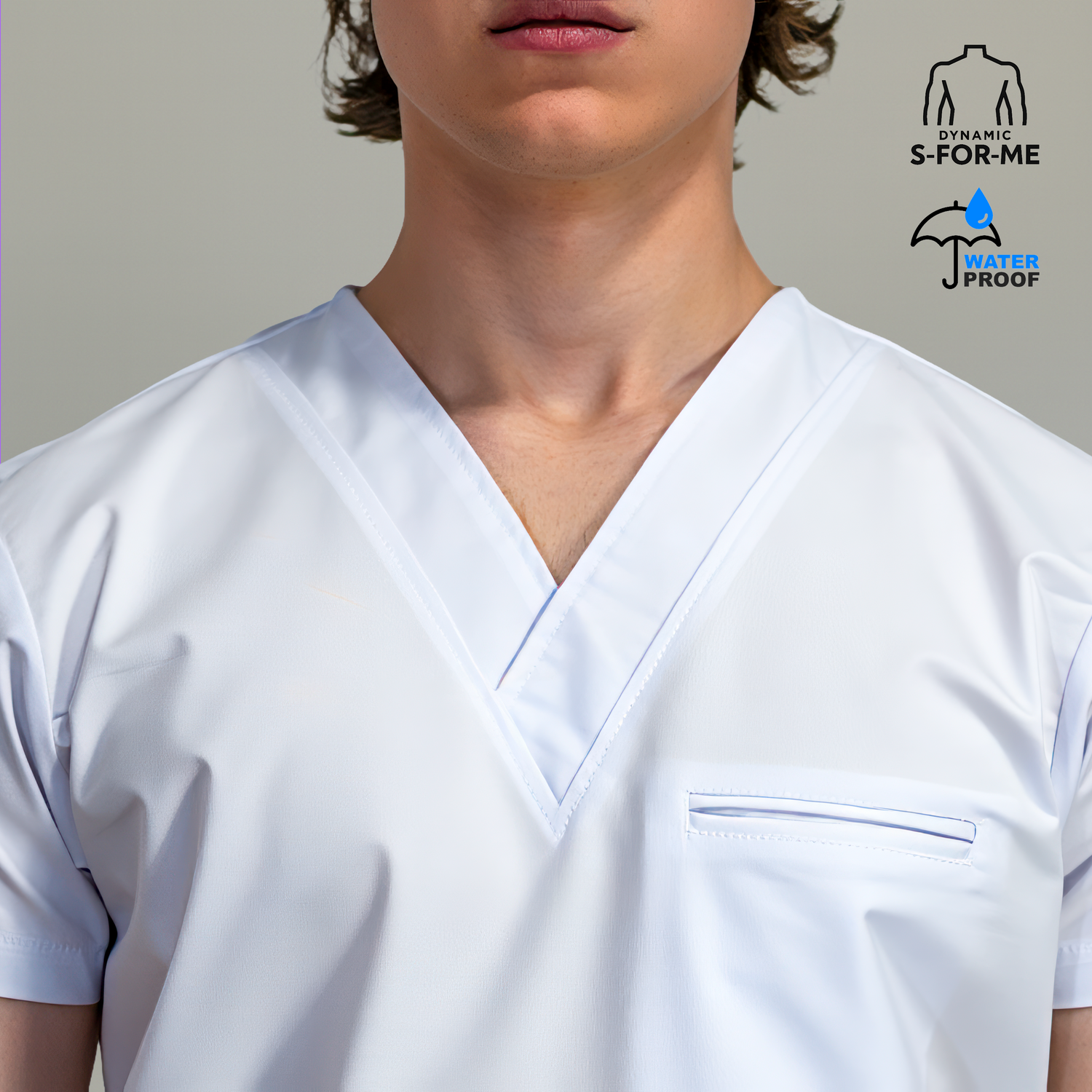 - Tela antifluido, prendas más limpias y más seguras por más tiempo, debido a su capa protectora que evita el paso de agua y salpicaduras accidentales de fluidos, actuando como un escudo protector para la piel